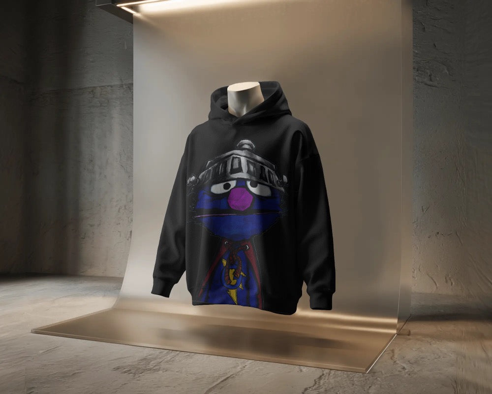 ALL BLACK CAN'T SAVE NO HO (super grover) PULLOVER(Celebrate the charm of classic childhood heroes with this cozy hoodie featuring a vibrant Super Grover design. The soft, durable fabric and cheerful artwork make it a standout piece for fans who love a mix of nostalgia, humor, and comfort.)
